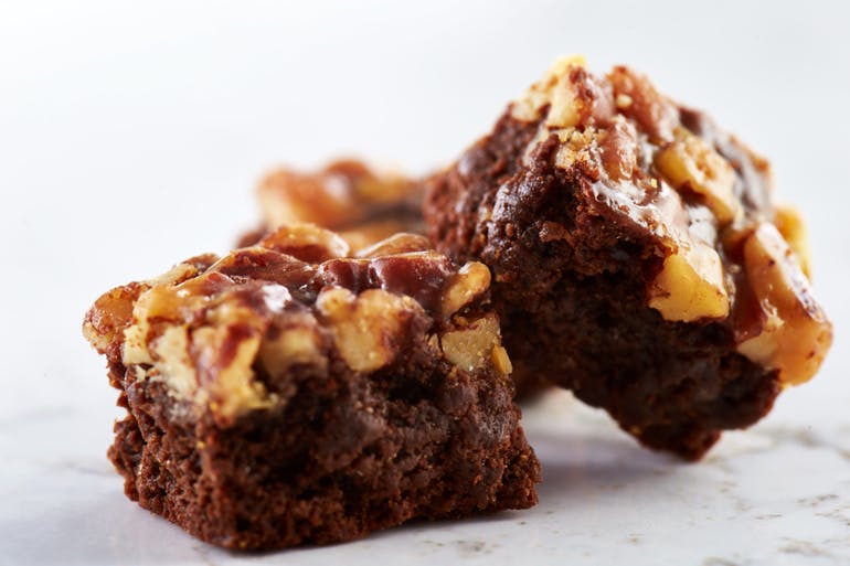 A moist, chocolaty, melt-in-your-mouth brownie topped with homemade caramel sauce and pecans. Always a best seller!