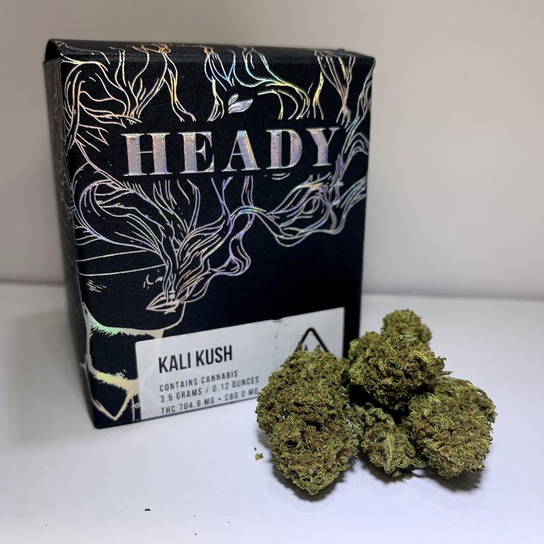Its buds are large and dense with few leaves and not many pistils. The flowers will be light green shot through with icy blue and packed with trichomes throughout. Kali Kush buds have a fruity citrus aroma with the darker coffee notes of a kush. With effects of relaxed, happy, hungry, sleepy, as well as, uplifted.
