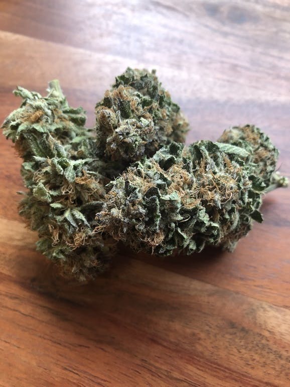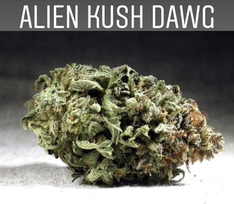 Alien Kush Dawg is a great, indica-leaning hybrid that is a cross of Alien Kush and Stardawg #2. It may leave you feeling a little spacey as this strain first settles in the brain for a dose of euphoria that is complimented by active creative effects that are more often associated with a sativa. The activity finally gives way to a relaxed body buzz that can help patients overcome stress and pain. It has an earthy chem/diesel/fuel/gas-like aroma with a hint of lemon. The taste is subtle and often compared to drinking a tea. AKD is truly strong and heavy with testing at 29% THC.