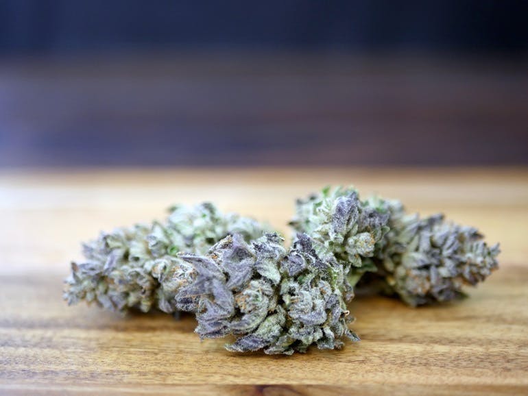 Two super strains, Do-Si-Dos x Purple Punch, come together in this indica-leaning hybrid. Effects include a dreamy ethereal state some have described to be dissociative. Slurricane is great at quieting the mind and relaxing the body. Expect a fruity, berry scent and flavor. Bred by In House Genetics and grown with love by Stoner&Co.