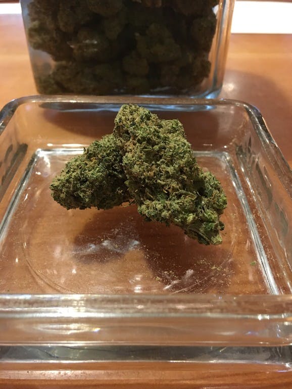 This strain seems to have a blue tint to it; most noticeable when light reflects off of each of the trichome-covered buds THC Content: 19.3%