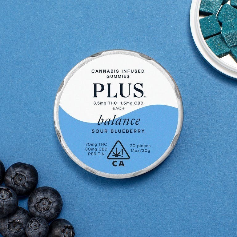 PLUS Balance Sour Blueberry Gummies - 70mg THC
