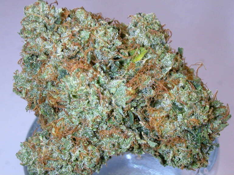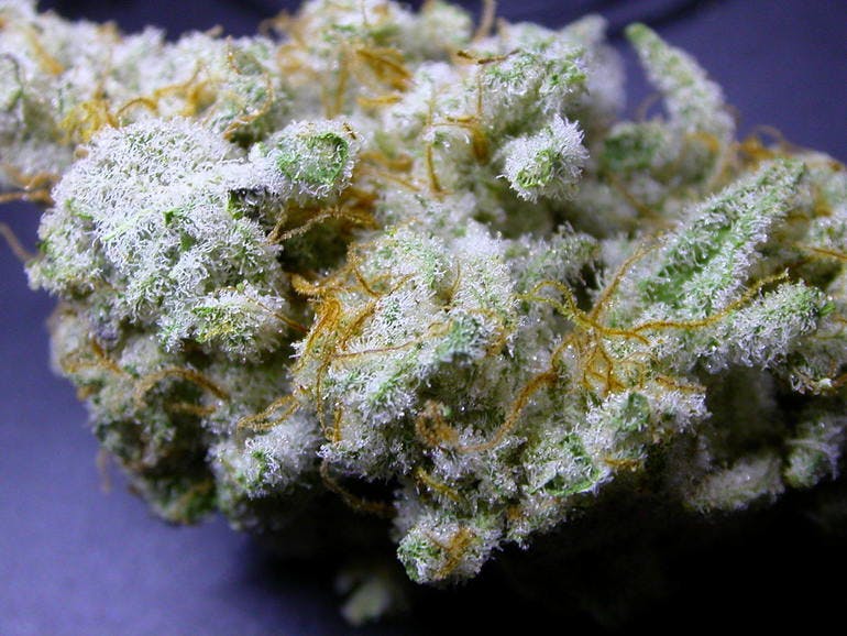 Mac 1 is an extremely rare indica strain with unknown parentage due to a high level of breeder secrecy and a general lack of information about the product. Regardless of its heritage, Mac 1 is one potent bud that is perfect for any indica lover, especially given its powerful 27-31% average THC level and heavy effects. The high starts with an energized effect that hits you fast and hard, infusing you with a clear-headed sense of focus that leaves you motivated and ready to hit back at anything that comes your way. A relaxing body buzz comes next, washing over you in calming waves of slight numbness without weighing you down. With these long-lasting effects, Mac 1 is one bud that would be perfect for treating conditions such as chronic fatigue, depression, headaches or migraines, and ADD or ADHD. This bud has dense grape-shaped olive green nugs with dark leaves, long thin orange hairs and a frosty thick coating of tiny lavender colored crystal trichomes. Mac 1 has a super strong pungent and rich spicy smooth flavor and an aroma to match, although it has a much skunkier and more pungent effect.