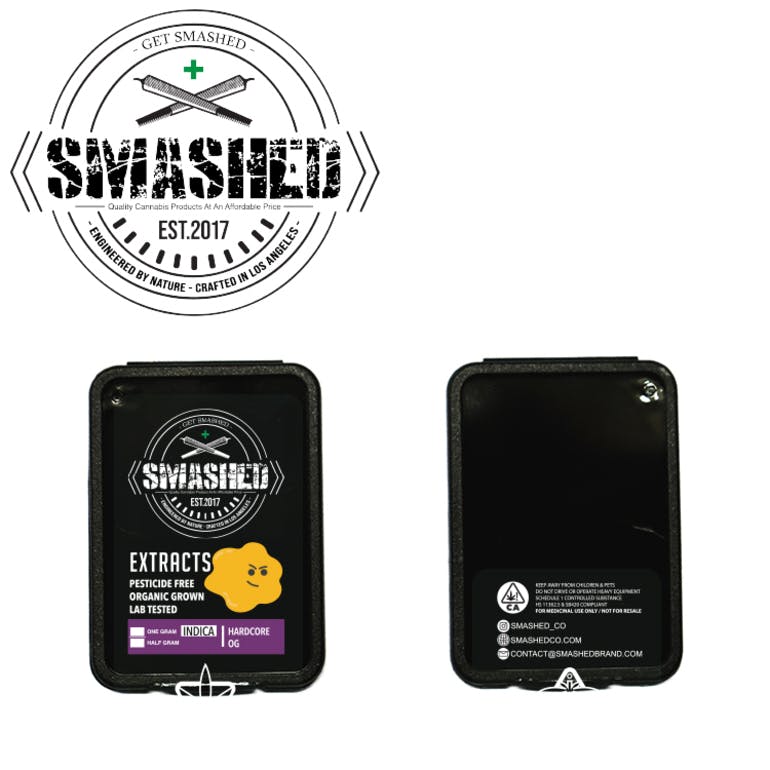 Smashed Extracts shatter is made from pesticide free organic grown cannabis. Each contains 0.5 grams of golden shatter. Available in 6 strains!