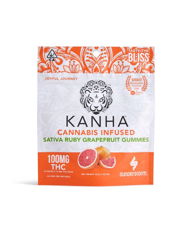 Kanha gummies are made with all-natural ingredients, coloring, and flavoring. Each gummy is infused with the highest quality cannabis oils to provide the most consistent, safe experience on the market. Our Ruby Grapefruit gummies are deliciously tart and made with sativa terpenes, which induce a stimulating and uplifting state of mind.