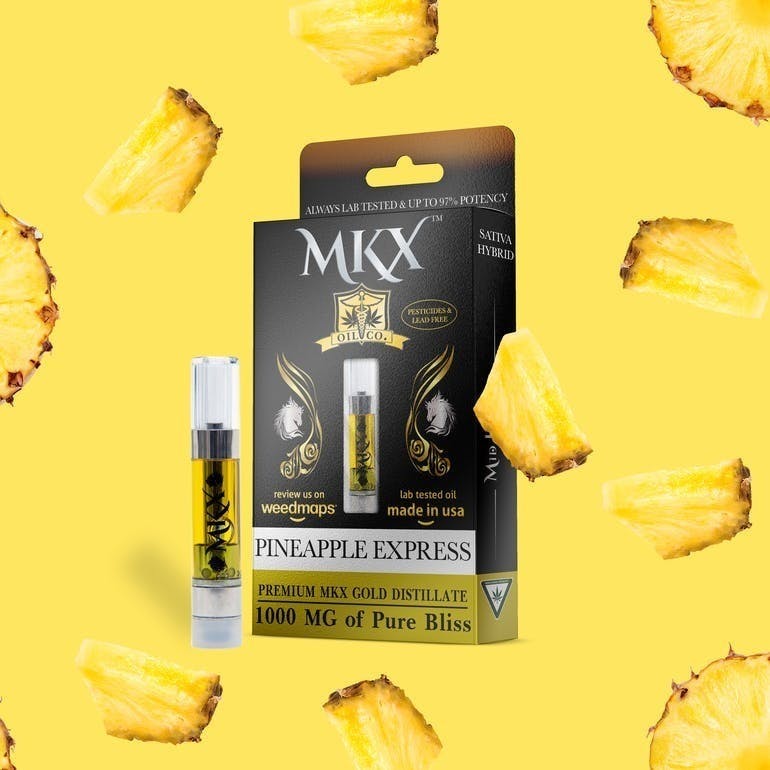 MIDKNIGHT XPRESS VAPE CARTIDGE 1ML PINEAPPLE EXPRESS. C-CELL CARTRIDGE, ALL NATURAL TERPENES, ALWAYS LAB TESTED UP TO 97% POTENCY, PG/VG/MCT FREE, SOLVENT FREE DISTILLATE, METAL/GLASS CARTRIDGE