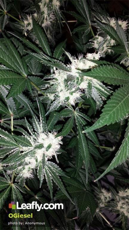 A cross between SFV OG Kush and Giesel, OGiesel is all smiles. While mild at first, a euphoric feeling creeps up steadily after initial use. A happy, uplifting strain. The aroma of this hybrid is strong and piney with pleasant lemon undertones.