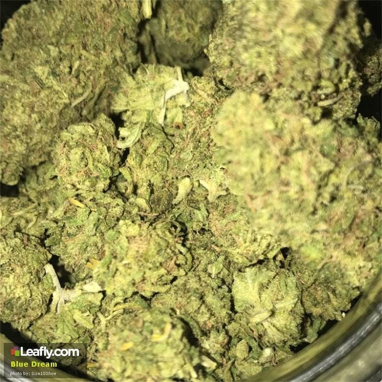 Blue Dream, a sativa-dominant hybrid. Crossing of Blueberry indica with the sativa Haze. Has a sweet berry aroma.