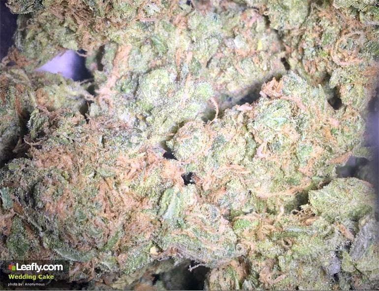 Wedding Cake, also known as Pink Cookies, is the familial genetic cross of Girl Scout Cookies and Cherry Pie. This delectable treat is rich with tangy sweet earth and pepper.