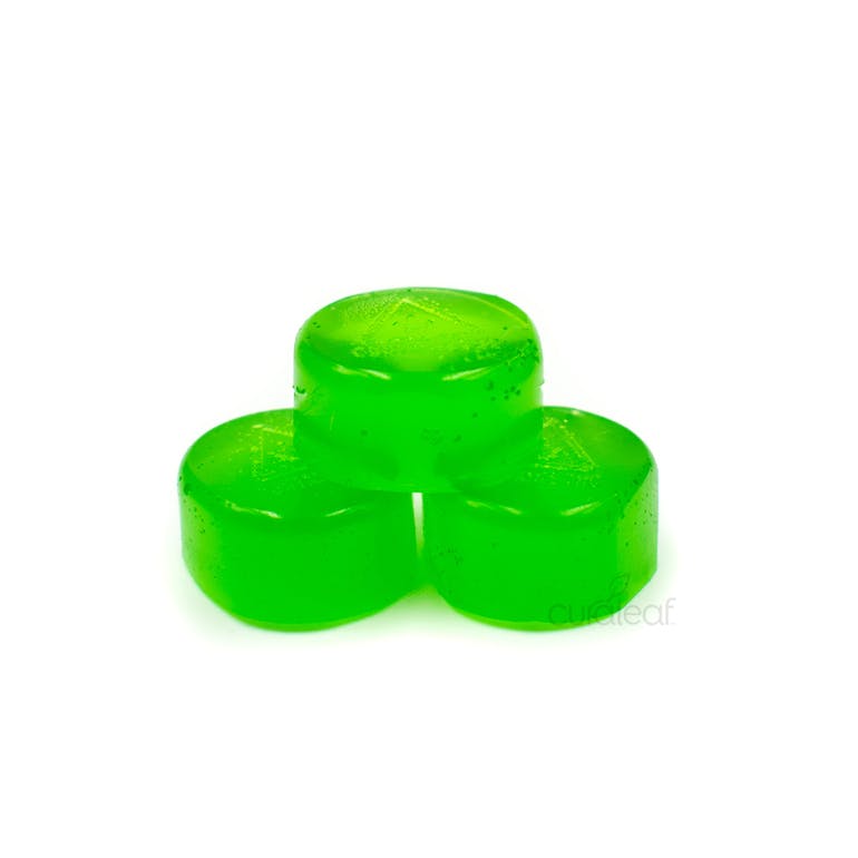 Lemon Lime flavored fruit chews. 8 chews per package, testing at ~5mg of THC each. *test results on edibles vary from batch to batch.