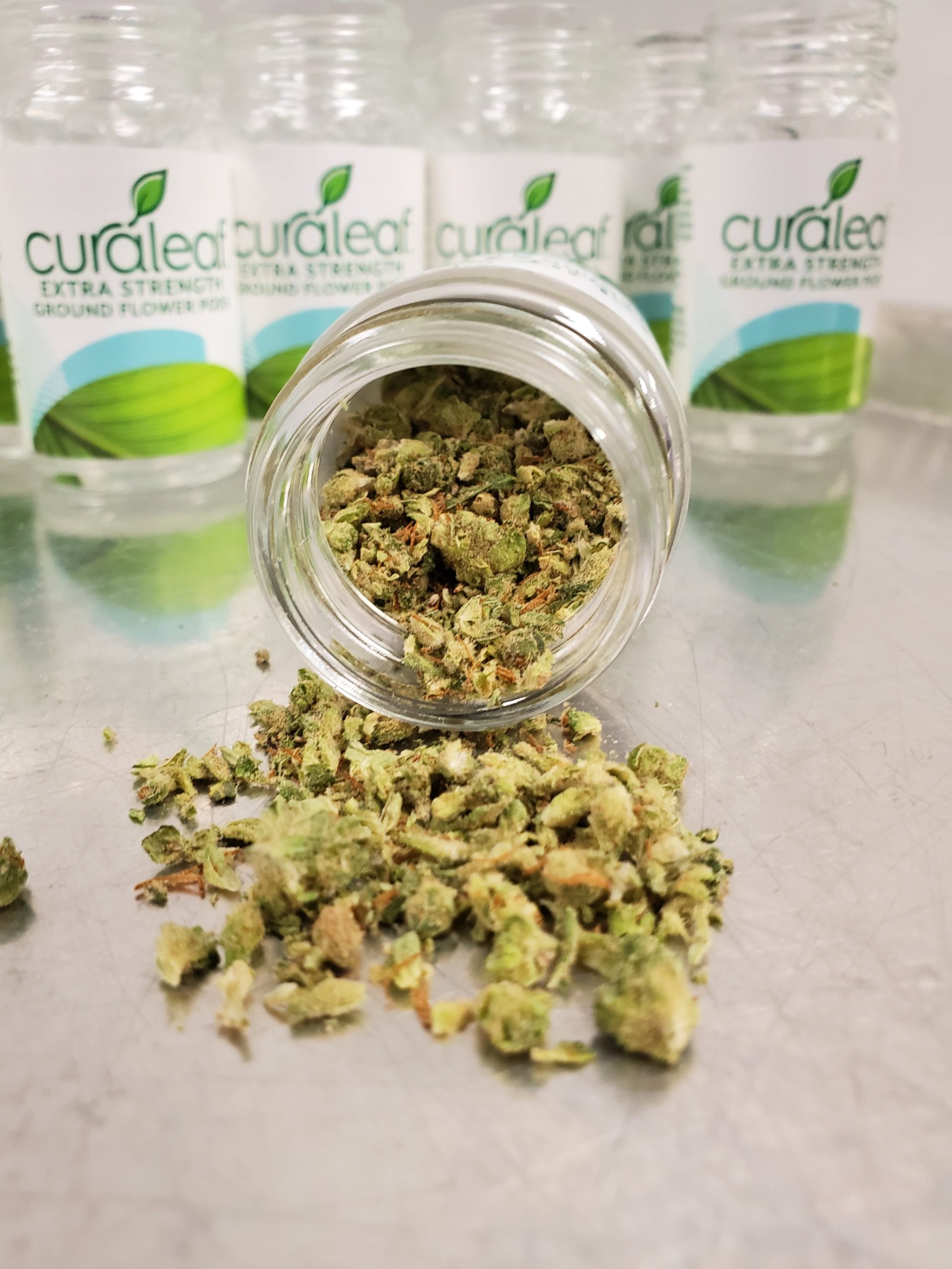 Curaleaf Ground Flower Pods Hybrid 20:1 contain all-natural cannabis flower and plant terpenes for vaporization. Each pod contains 1.75g of cured cannabis flower and 350mg of active cannabinoids in the THC:CBD ratio of 20:1 for a total 3.5g of cannabis and 700mg of active cannabinoids per bottle. Inhalation is the fastest-acting route of administration. When inhaled, the active cannabinoids pass directly into the bloodstream from the lungs. One slow, controlled inhalation lasting two seconds delivers approximately 2.5mg of active cannabinoids. Effects occur in 90 seconds, lasting for two to three hours and for some patients up to 12 hours. Administration Form: Inhalation Vapor Ratio: 20:1 THC: 2.5mg / inhalation CBD: 0.125mg / inhalation Cannabis Type: Hybrid Product Contains: Ground Cannabis, Natural Terpenes Unit Size: 3.5g cured cannabis flower and 700mg active cannabinoids