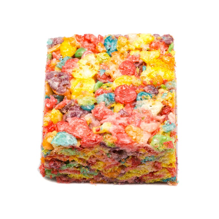 More info Fruit-flavored rice crispy treats for a departure from the usual. Fruit-flavored puffed rice and marshmallows infused with 75mg of activated cannabinoids.