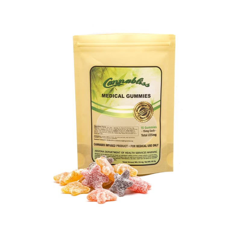 More info Arizona’s best gummies, bar none. We spent months perfecting a true infused (and not spray-on) gummie, made from scratch and with the finest ingredients available. 15 gummies per package, 15mg dose per gummy, 225mg total activated cannabinoids.