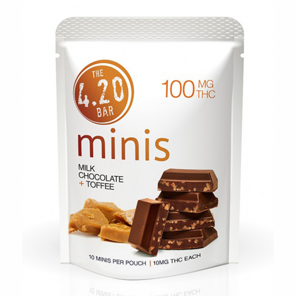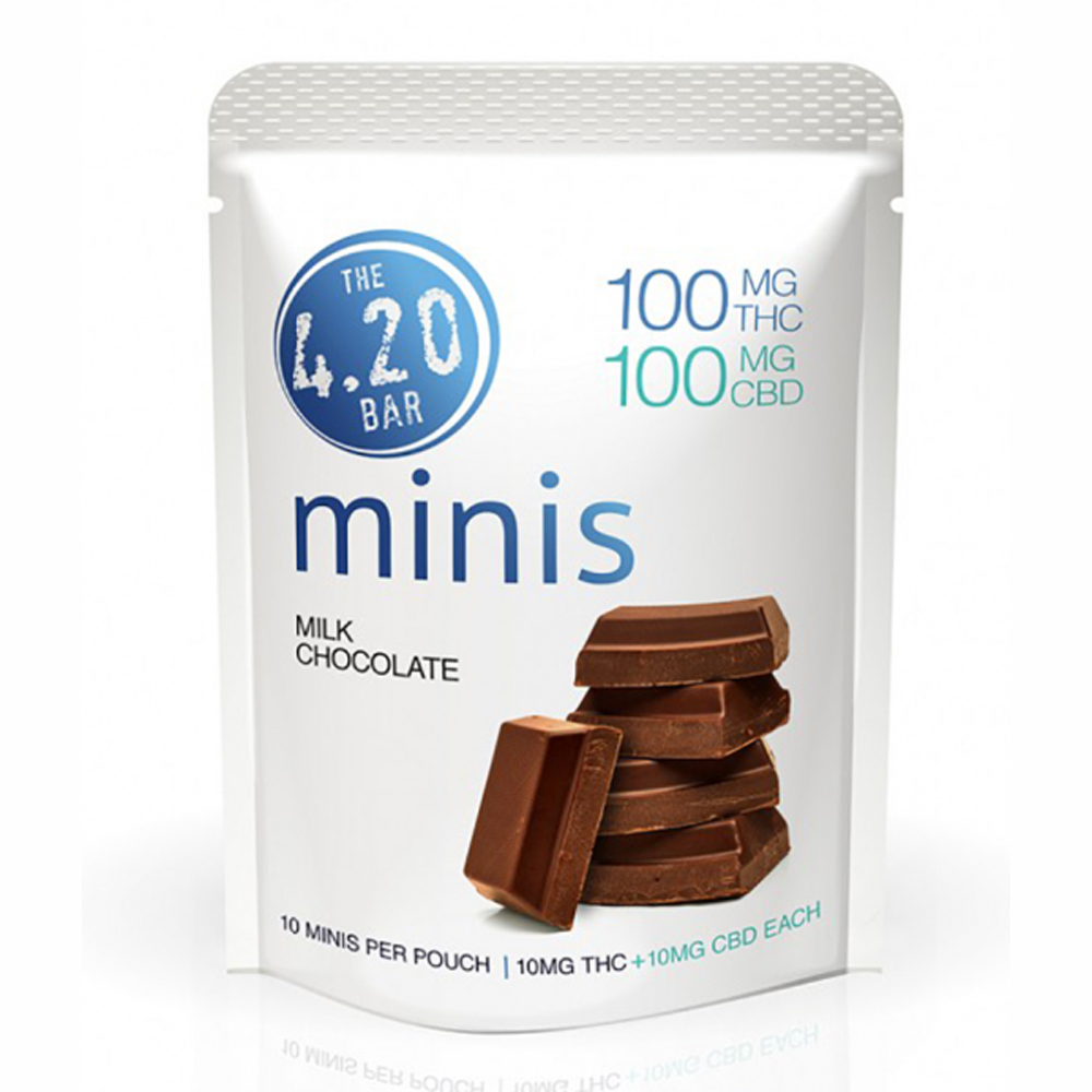 Your favorite 4.20Bar in a bite-sized morsel! Now offered in 1:1 THC:CBD for a balanced effect. Smooth, creamy, classic milk chocolate. Fair Trade 38% Cacao. Gluten-Free, All-Natural.