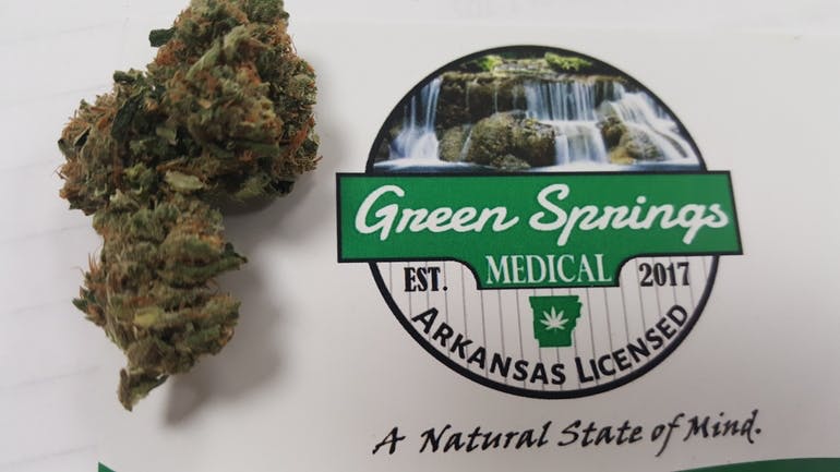 STEEP HILL LAB RESULTS: 21.3% THC, 80% Indica/ 20% Sativa Flavor: Hint of chocolate and nuts with vanilla cream. Causes a powerful and long-lasting feeling of relaxation that doesn't cause couch-lock but definitely helps you unwind, unlike many other Indicas which can be more sedative. It can be over powering to new clients due to its THC content. Relaxing, euphoric, & uplifting, effects, helps with anxiety, PTSD, ADD, ADHD, migraines, hypertension, muscle cramps, soreness, lowers blood pressure, Genealogy: Starfighter & Girl Scout Cookies This $5.00 per gram price is part of our compassionate pricing program. We want everyone to be able to purchase medical marijuana at an affordable price. So that we can offer this program to everyone that would like to take advantage of it, we have a maximum allotment of 7 grams that you may purchase per day at this affordable $5.00 per gram price. We reserve the right to substitute the daily $5.00/ gram strain once our inventory runs low. We will always have a $5.00/ gram strain available. Thank you for choosing Green Springs as your favorite Arkansas dispensary...