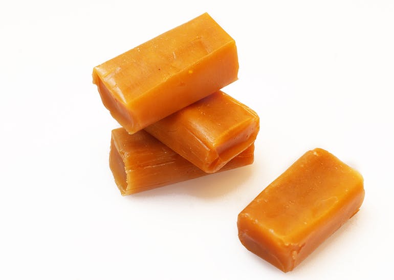Traditional Maine Sea Salt Caramel. Each pack comes with 4 evenly dosed pieces.