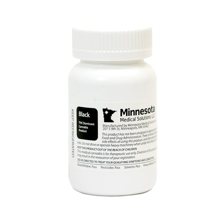 MinnMed Black products are predominantly THC, specially made for patients desiring a higher concentration of this active ingredient. With all MinnMed products, a baseline level of CBD is present, since some studies suggest that CBD can reduce unpleasant side effects of THC. The primary active ingredients in this medication are delta-9-tetrahydrocannabinol (THC) and cannabidiol (CBD).