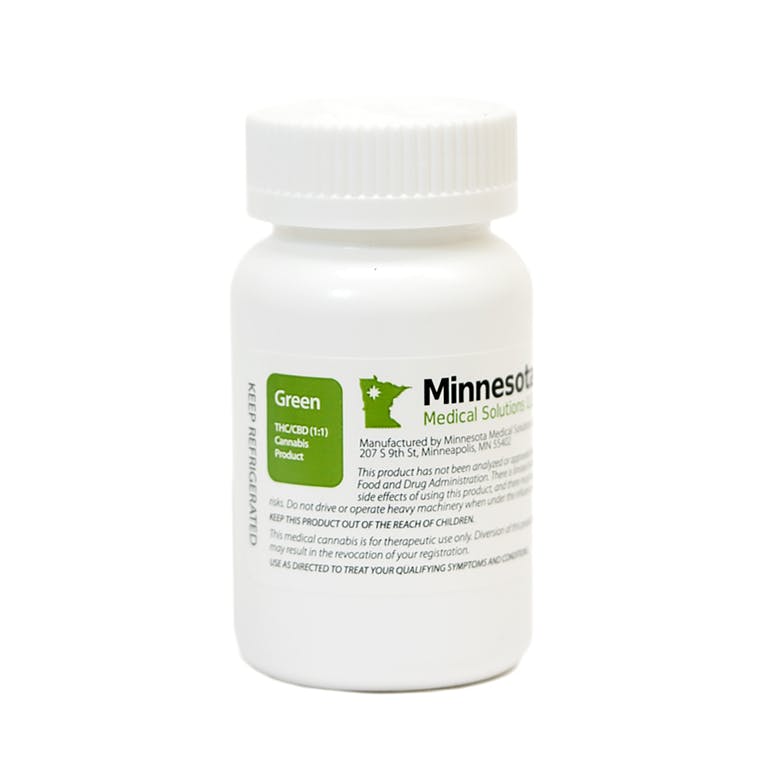 MinnMed Green products are balanced, with equal amounts of THC and CBD. The primary active ingredients in this medication are delta-9-tetrahydrocannabinol (THC) and cannabidiol (CBD). THC: 2.5 mg/capsule CBD: 2.5 mg/capsule