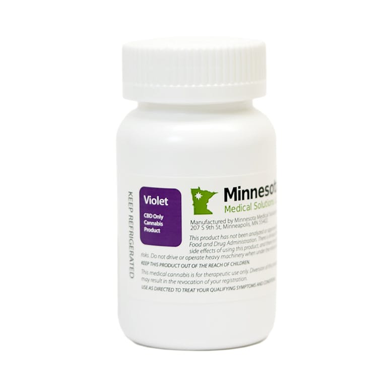MinnMed Violet are our CBD-based products. Unlike other synthetic products widely advertised online, our Violet products are extracted from plants grown right here in Minnesota and lab-tested for safety and potency. The primary active ingredient in this medication is cannabidiol (CBD). THC: <0.3% CBD: 100 mg/capsule