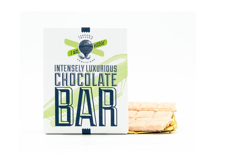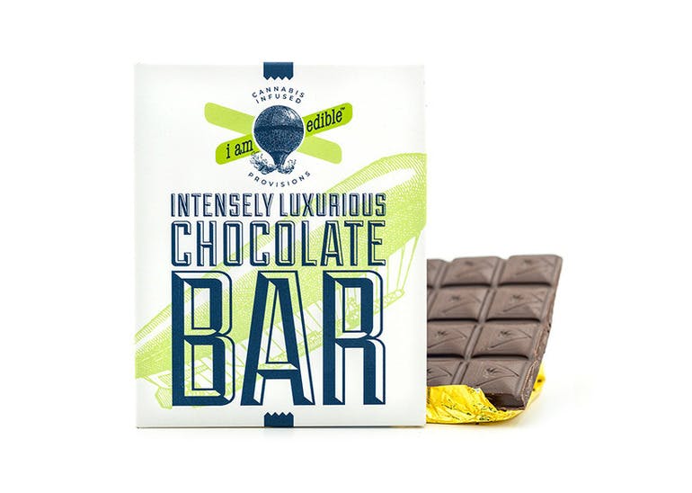 IamEdible THC infused chocolate bar sectioned into 20 easy dosing pieces. Ingredients: Sugar, Partially Hydrogenated Palm Kernel and Cotton Oils, Nonfat Dry Milk, Cacao Processed with Alkali, Cocoa, Glyceryl, Lacto esters of Fatty acids, Soy Lecithin, Salt, Cannabis Oil Distillate. Divide total cannabinoids by 20 to get the dosage per piece. Approximately 100mg per bar.