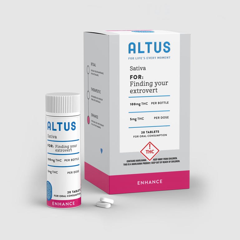 ENHANCE by Altus is perfect for finding your extrovert. Specifically formulated for your personal cannabis needs, each bottle contains 20 pills with 5mg of pure impurity-free Sativa THC distillate. ENHANCE is perfect for changing the world, or your perception of it.
