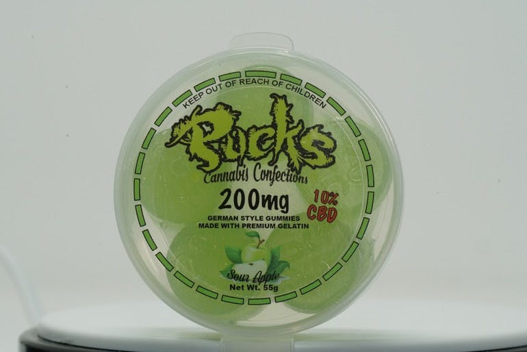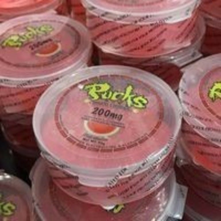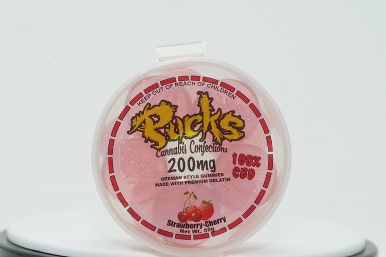 100% CBD Infused Gummi Pucks. (No THC) 20mg of CBD per puck. 10 pucks per pack.